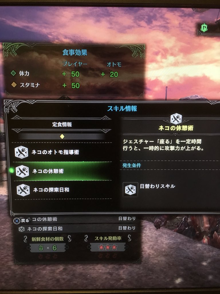Mhwi おすすめのネコの食事スキルは モンハンワールドの日替わり